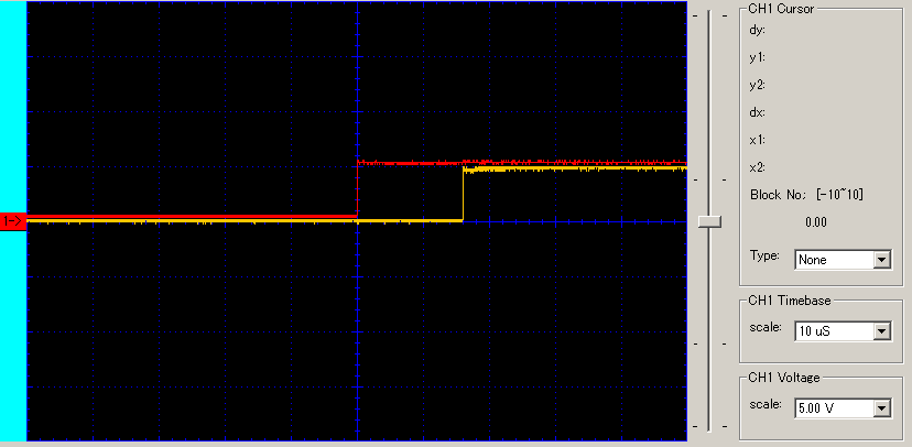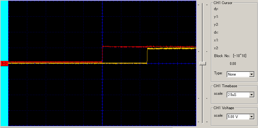 11usecぐらい。あれ、なんで立ち上がりの方が遅れるんだ?